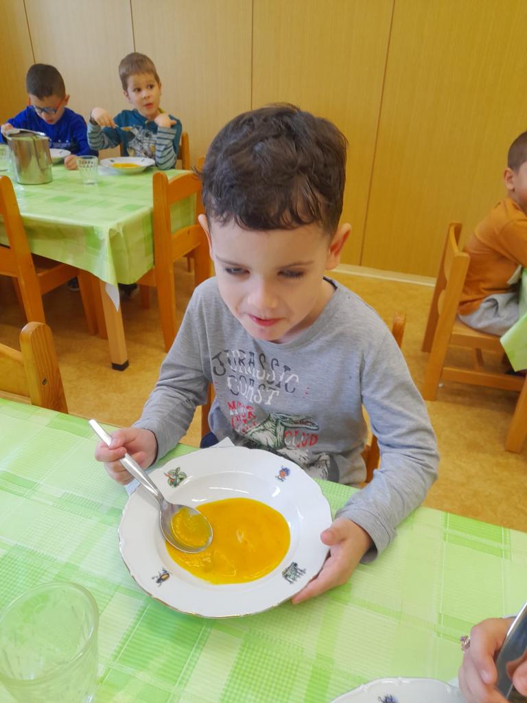 Vaření dýňové polévky a halloweenský rej a veselí patří neodmyslitelně k tradicím naší školičky.
