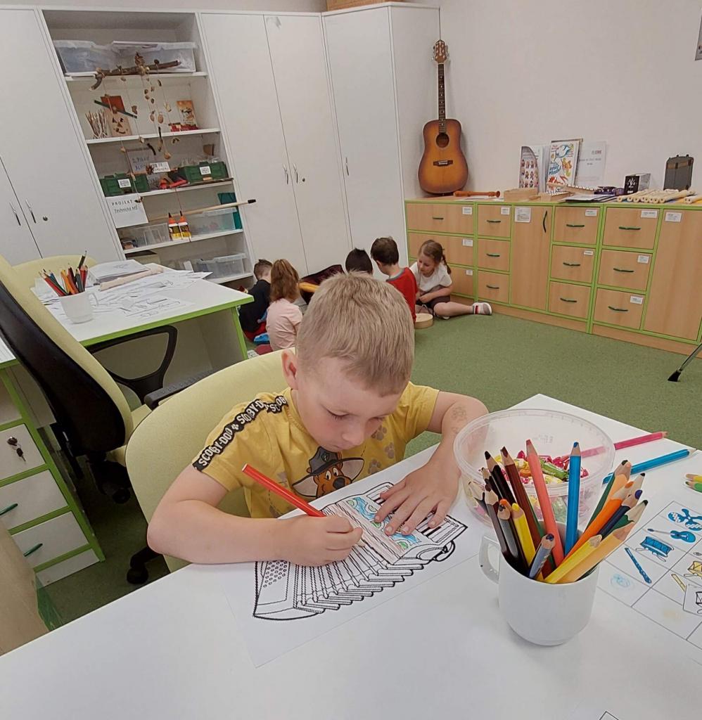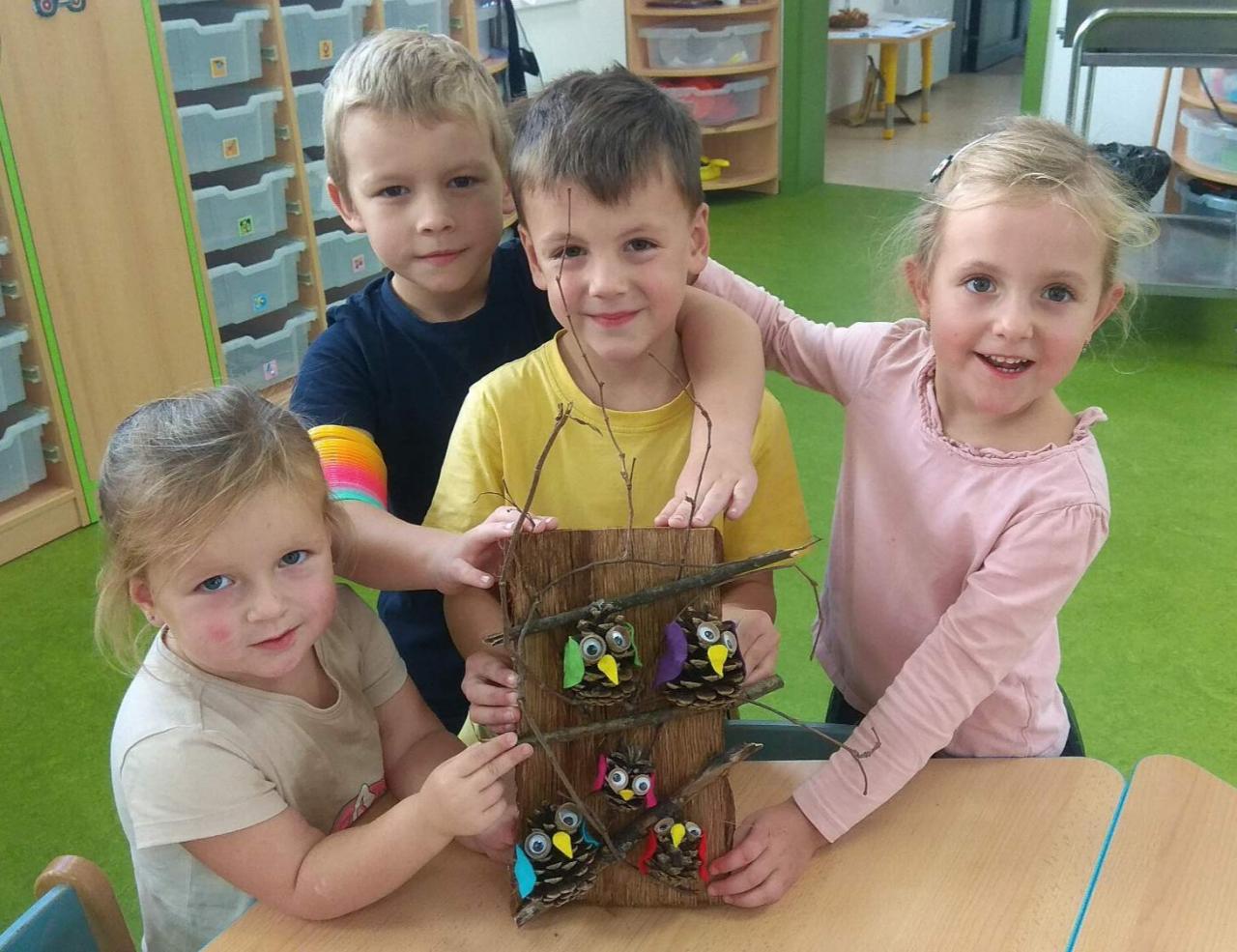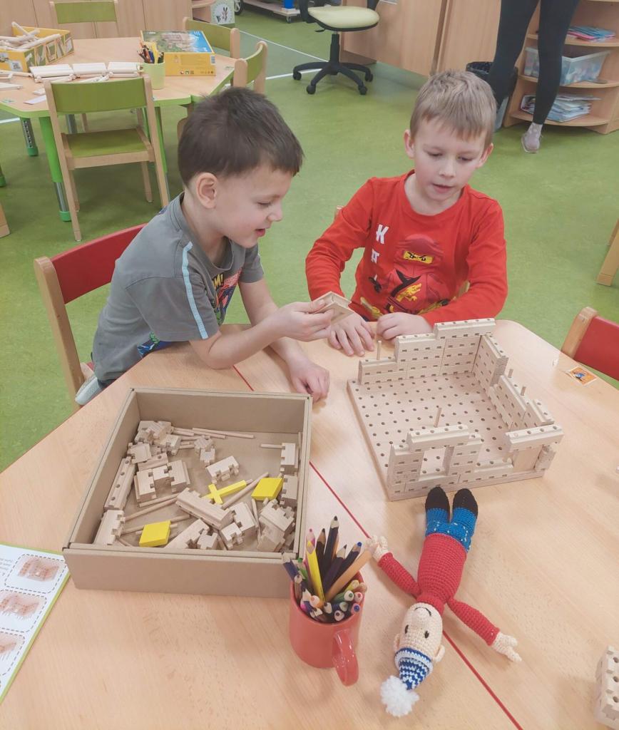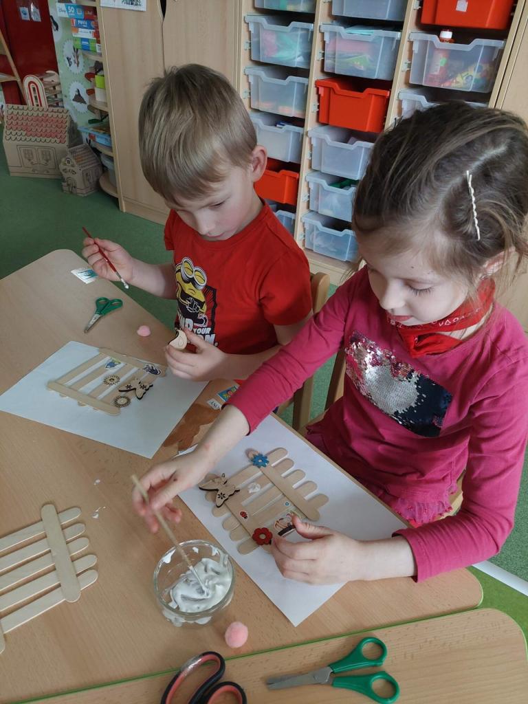 Děti v projektu Techniká MŠ pracují během pobytu venku i odpoledních činností se dřevem a různým přírodním materiálem. Řežou, zatloukají, stříhají, lepí, zdobí a pracují s tavnou pistolí. Výrobky si většinou odnesou domů, některé s louží k výzdobě školy.