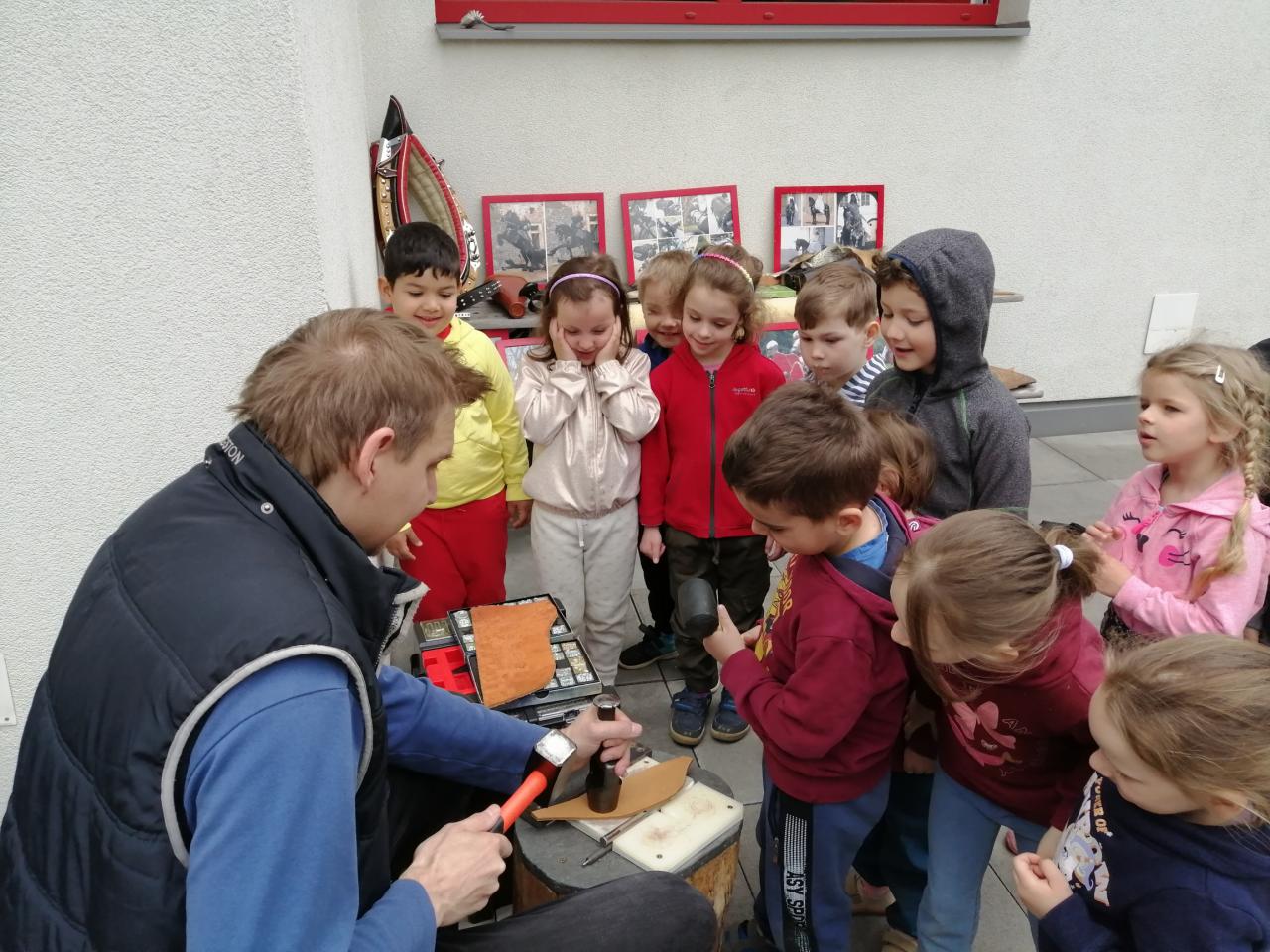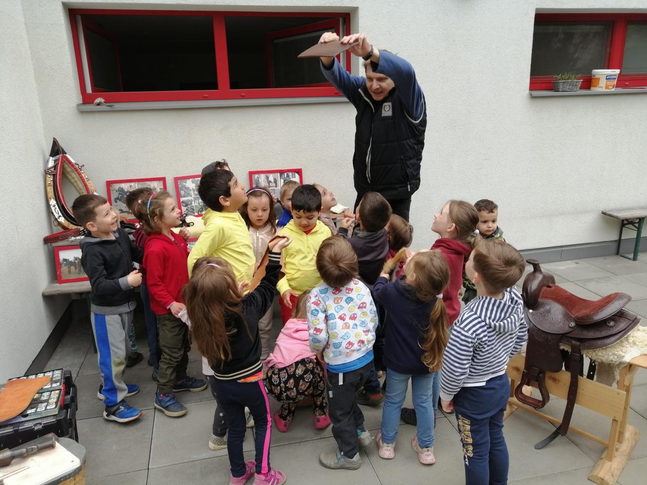 Před svátkem maminek nás navštívil pan Psota se Sedlářskými dílničkami a seznámil nás, jak se pracuje s kůží, co vše se z ní dá udělat a my jsme si vlastnoručně vyrobili svým maminkám na památku krásný kožený přívěšek.