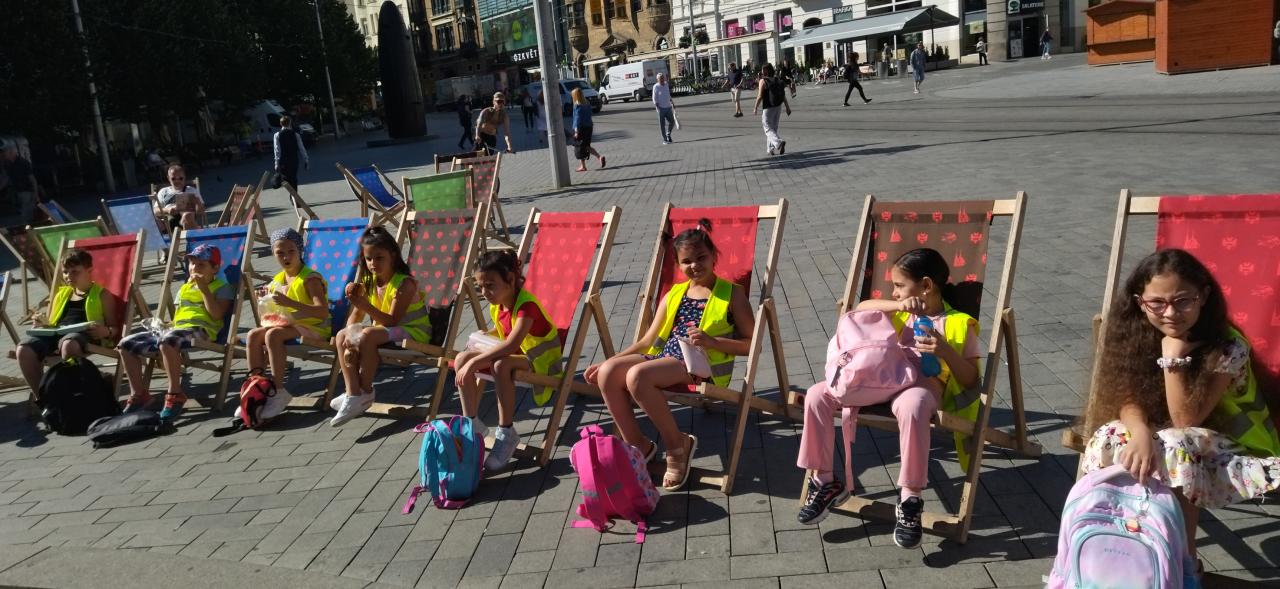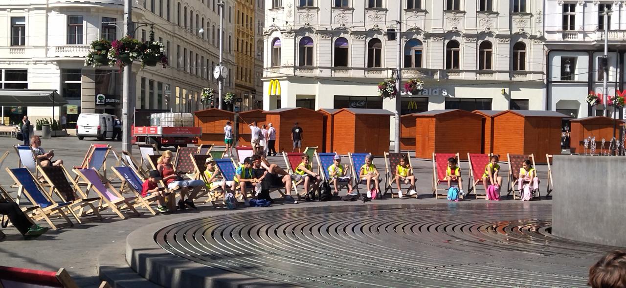 Po návštívení kutlurních s významných míst - socha Jošta, náměstí Svobody - kašny a verše J. Skácela, Stará radnice s krokodýlem s pokřivenými věžičkami, Zelný trh, kostel Sv. Jakuba, jsme zašli do cukrárny na zmrzlinu. Na závěr se děti sověžily ve fontánách u Janáčkova divadla.