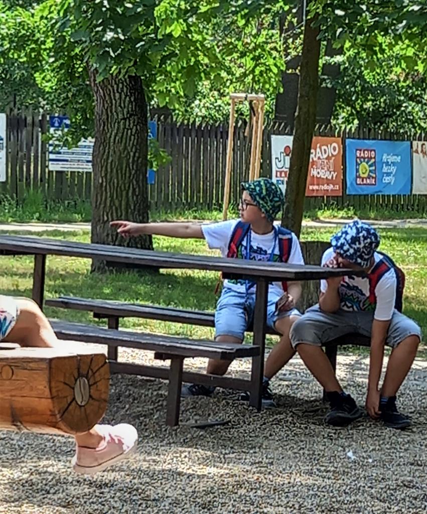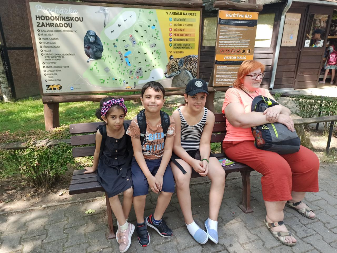 Za hodinku ve vlaku jsme se posilnili svačinami od našich maminek a babiček. Někteří měli ve vlaku svoji premiéru a zvládli to na jedničku. V Hodoníně nám trošku sprchlo, ale my jsme ve vedru déšť uvítali. Než přijel autobus, bylo po dešti a my už pochodovali od zastávky Bažantnice III směrem do areálu ZOO.
