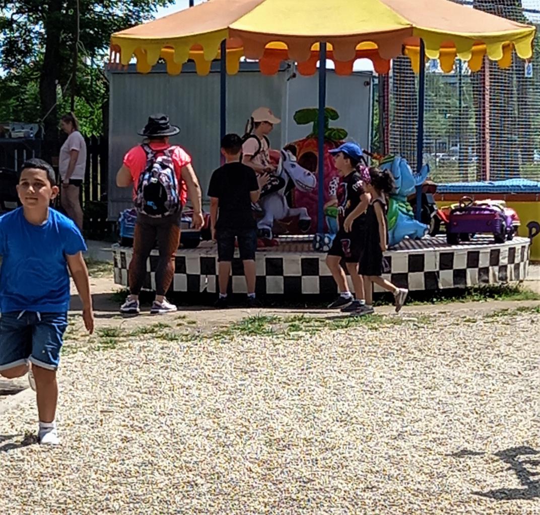 Nakonec jsme se vyřádili ještě na hřišti, kde byly houpačky, prolézačky, kolotoč a trampolíny.