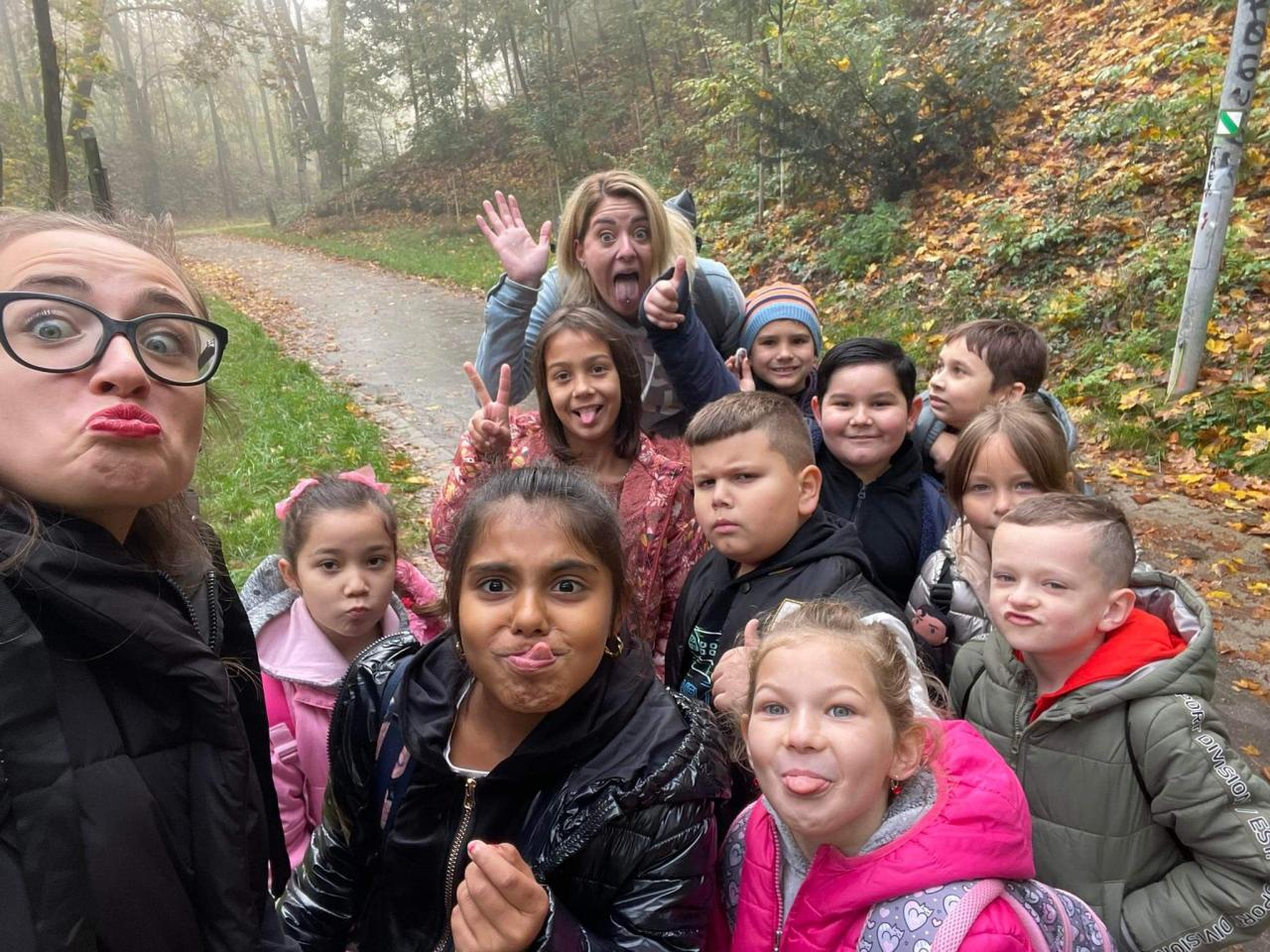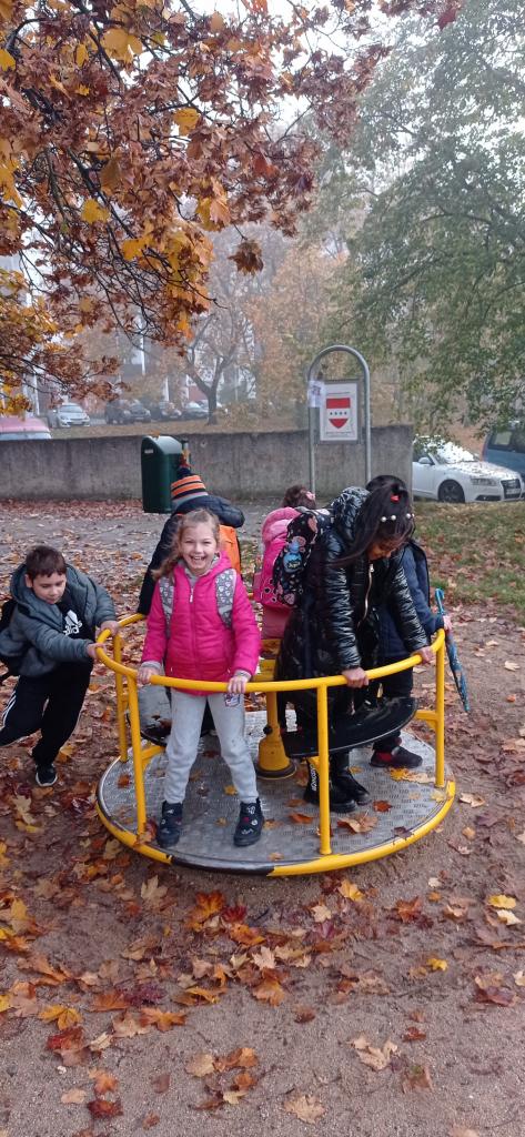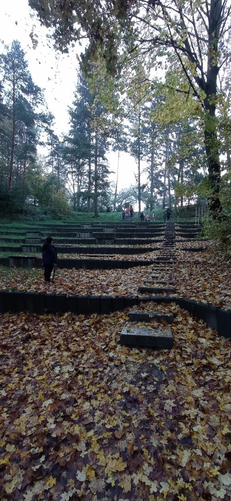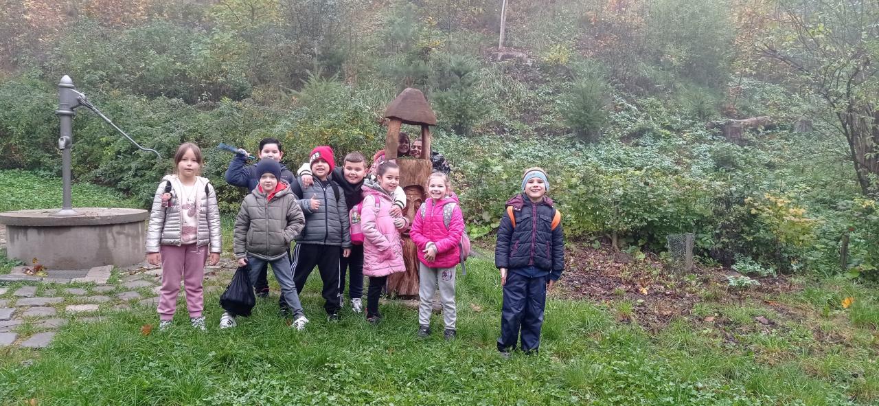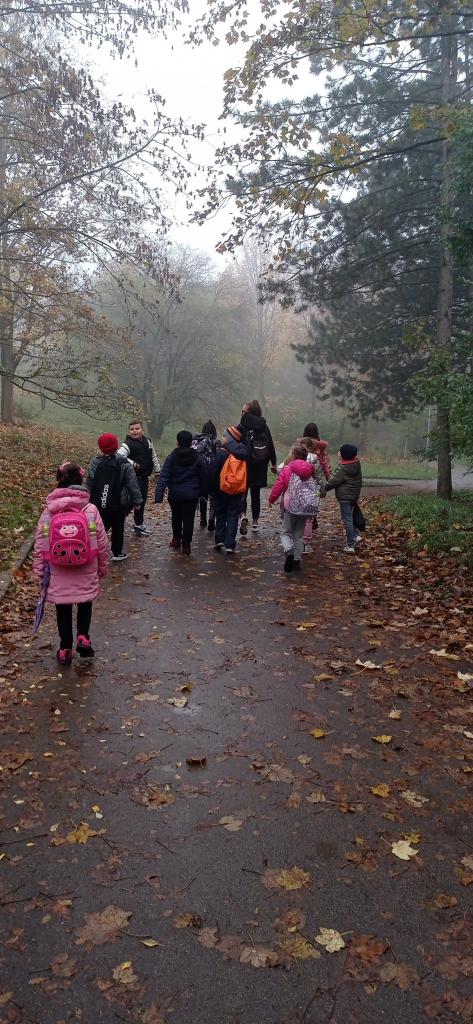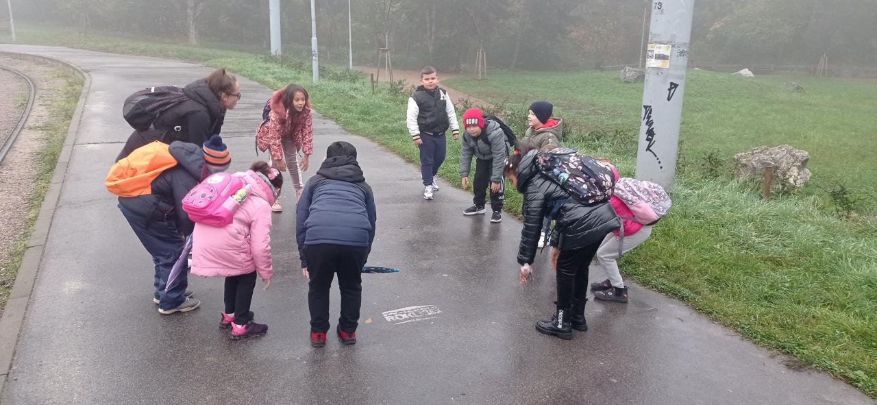 Procházka roklí, pozorování podzimní přírody, nesení kaštánků zvířátkům, pozorování veverek a krátká návštěva hřiště.