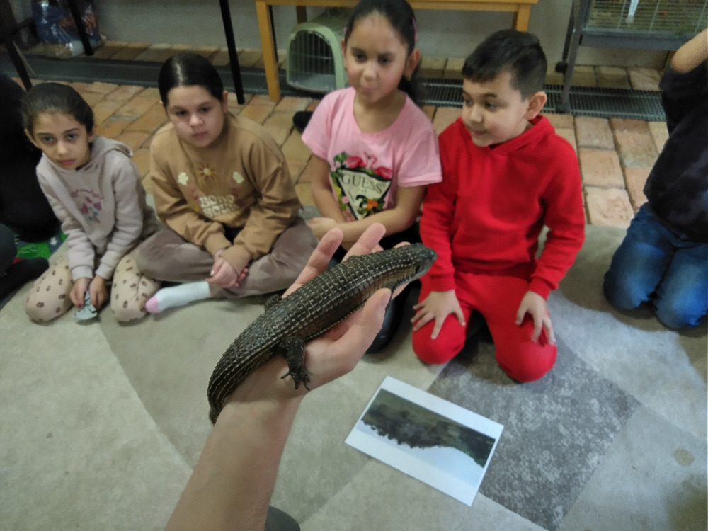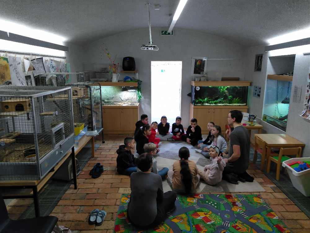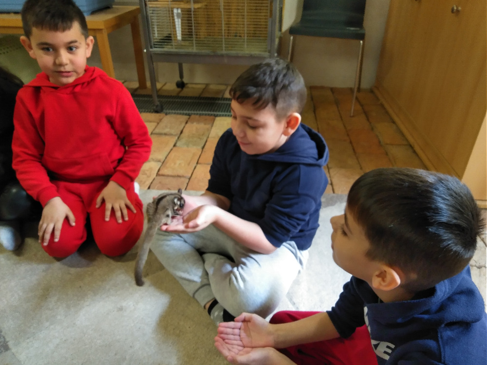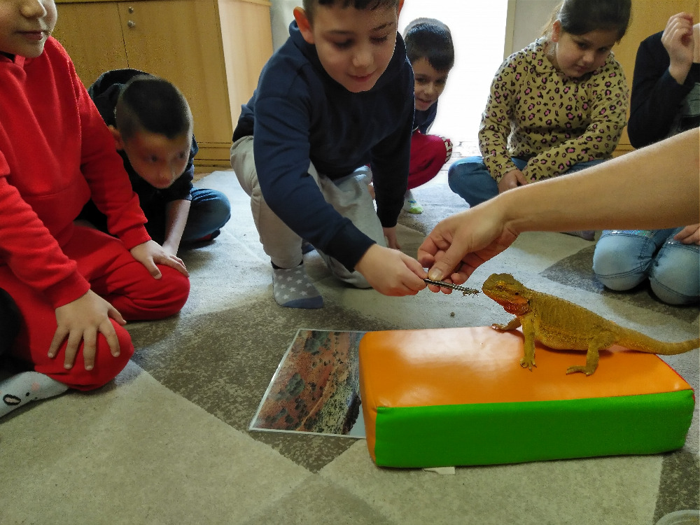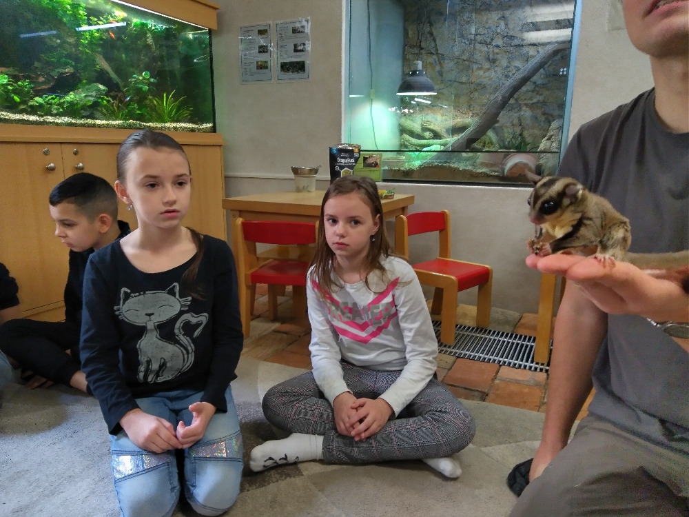 Tentokrát na program Zvířátka na Hlídce. První zvířátko, se kterým se děti seznámily, byla morčata, která někteří z nich znali. Dále měly děti možnost seznámit se s vakoveverkou Chipem, kterou si mohly i podržet. Zajímavé bylo, že aby veverka v klidu seděla, musela při tom jíst červíka, což bylo pro někoho nepřekonatelnou překážkou. Dalším zvířetem, které si mohly děti nakrmit a podržet, byla agama vousatá jménem Alice. Následoval ještěrkovec velký, želvy a atraktivní korálovka sedlatá jménem Žižlík. Poté nám lektor představil i svou oblíbenou skupinu, hmyz, zastoupený různými druhy strašilek. Na závěr se děti mohly ve dvojicích postarat o králíky tím, že jim vyměnily vodu a nakrmily je. Celý program byl pro děti zajímavým zážitkem.