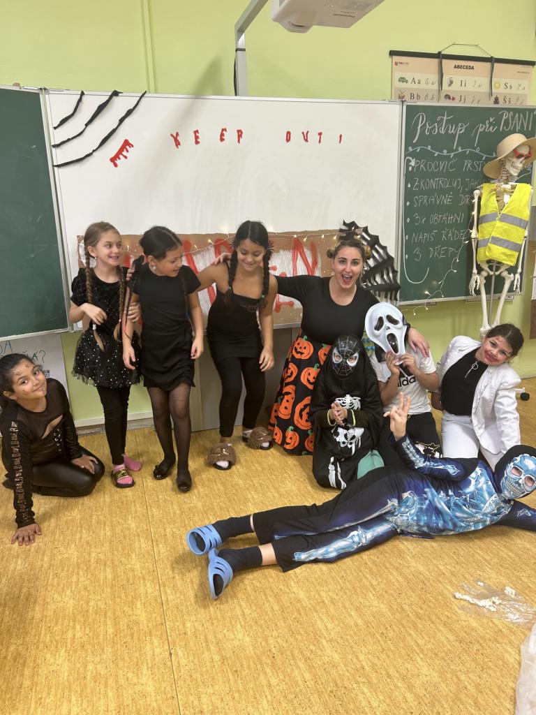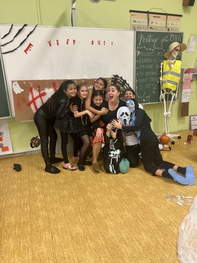 V tento den jsme všichni ze třídy přišli v nějakém strašidelném kostýmu a kochali jsme se naší výzdobou, která se nám letos velmi zdařila!