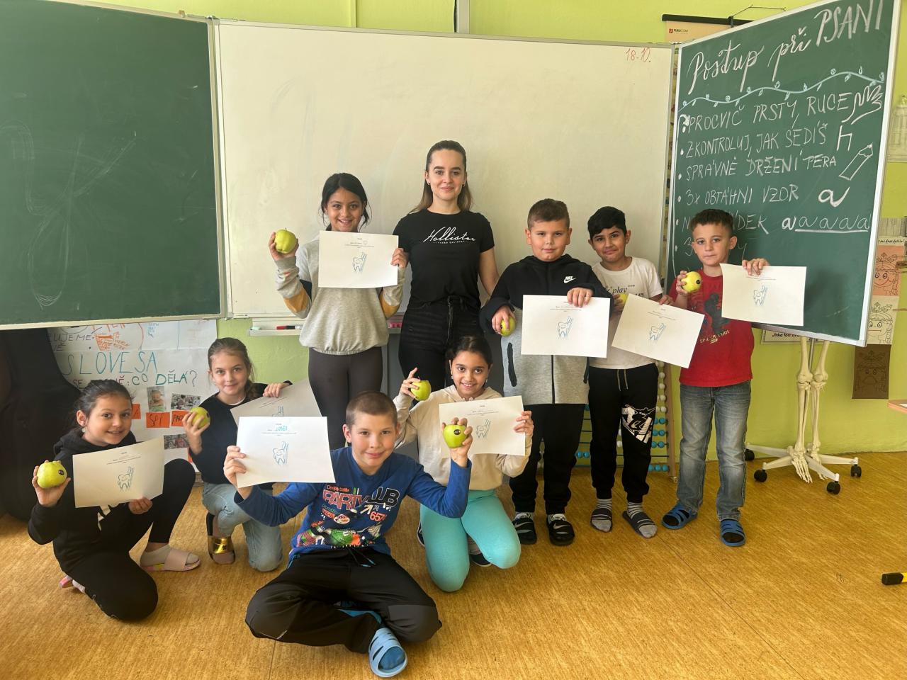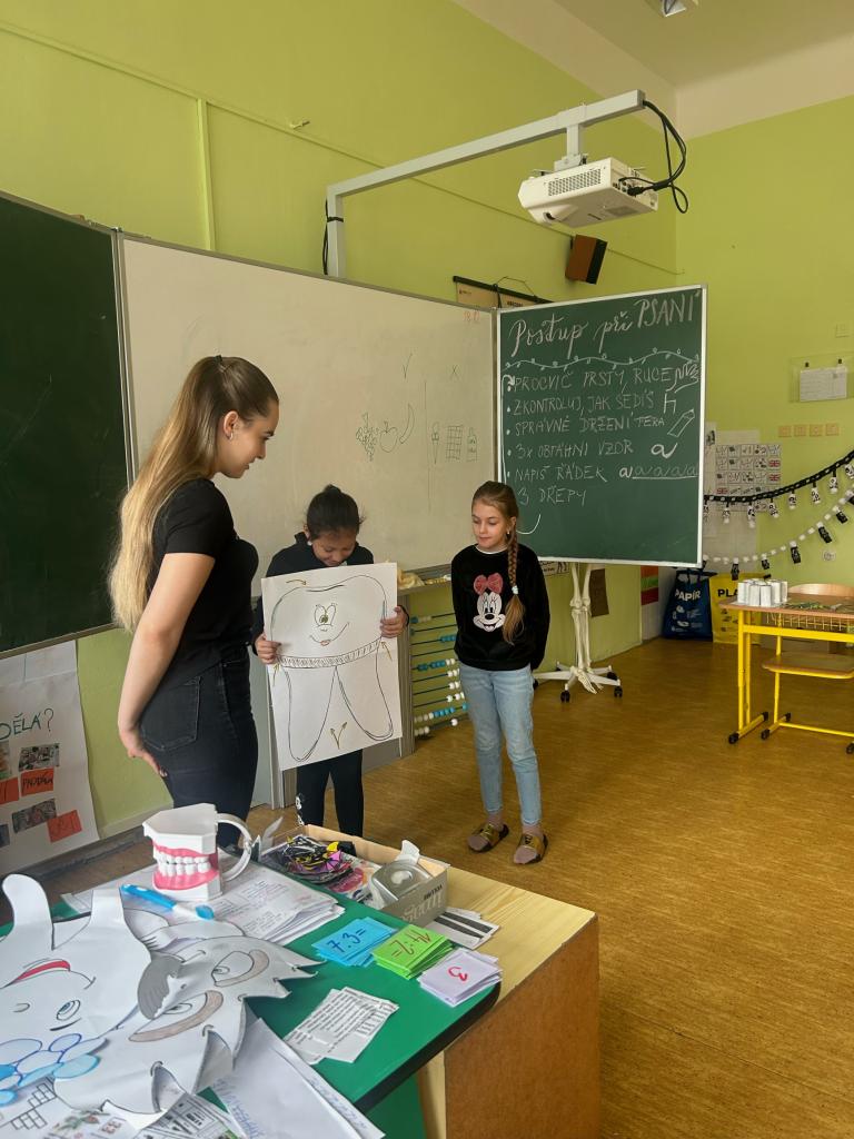 My už jsme ji znali z minulého roku, kdy jsme se dozvěděli základy dentální hygieny. Nyní nám dentální hygienistka prozradila detailnější informace o našich zoubkách. Např. nám ukázala, kde přesně má zoubek krček, korunku a kořeny. Dále nám prozradila, jaké jídlo je vhodné a nevhodné pro naše zoubky… atd. Na závěr jsme si vyplnili pracovní list, a tak si potvrdili naše znalosti z výuky.