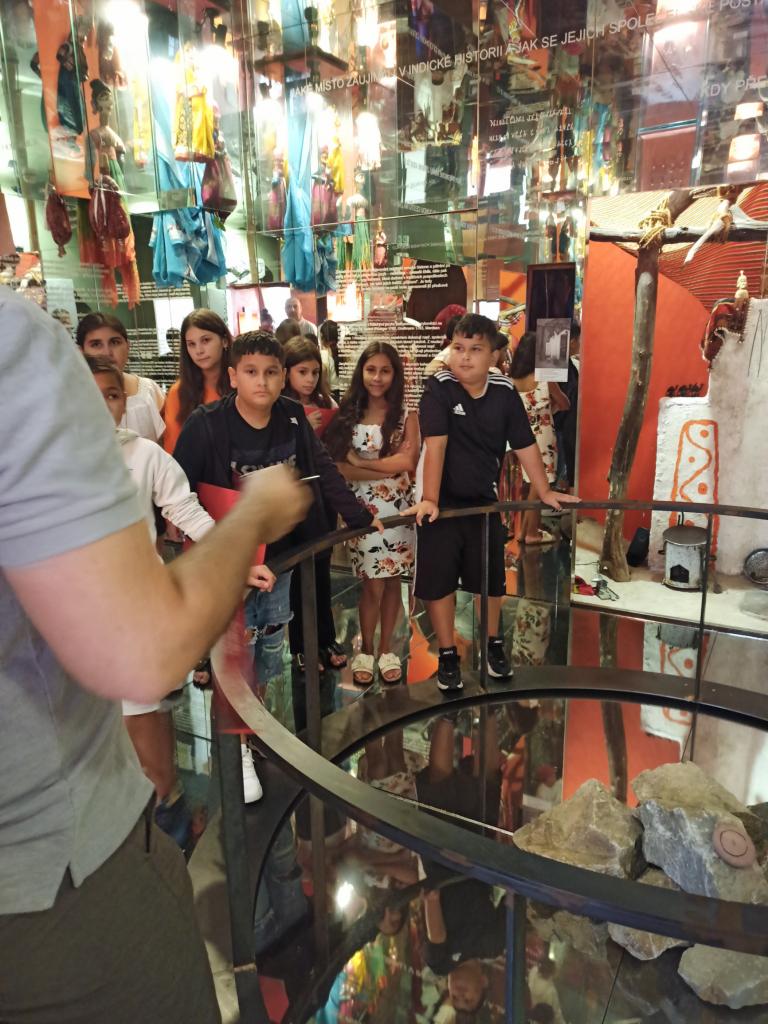 S odborným výkladem a vyplňováním pracovních listů ve dvojicích se děti dozvěděli zase něco o kultuře Romů, jejich kočovném způsobu života, způsobu obživy, práce a zábavy. V rukavičkách jsme si sáhli na předměty, které jsou stále doplňovány do depozitářů muzea romské kultury, např. na housle, klobouk, měděný svícen, zlaté šperky, vějíř. Někteří zjistili, že ne všechna slova z romštiny znají a naučili se je právě zde.