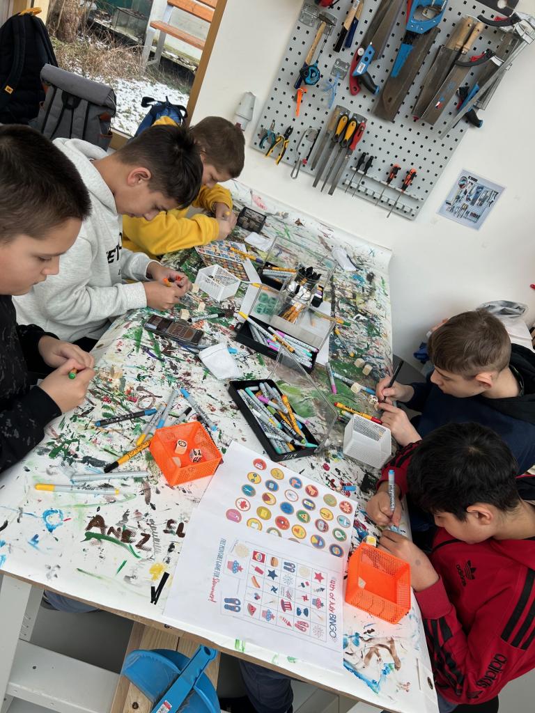 Žáci si nejprve kostky sami vyřezali ze dřeva, poté je pečlivě obrousili, aby byly hladké a příjemné na dotek. Následně je podle vlastní fantazie pomalovali různými motivy.