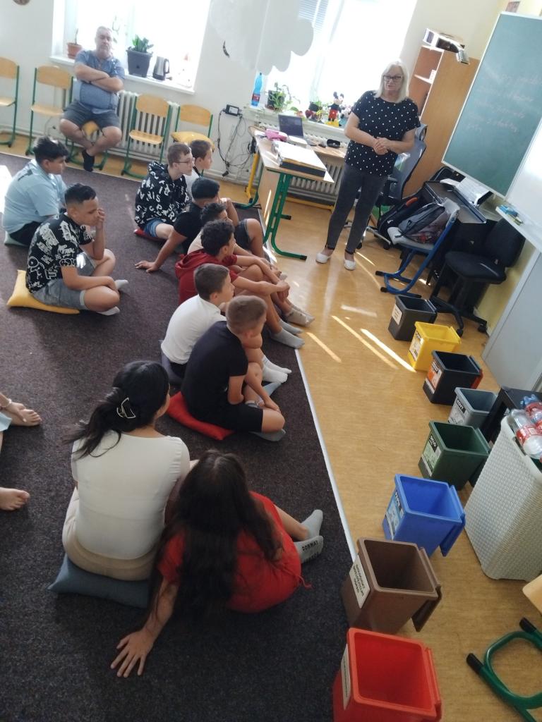 Že třídit odpad má smysl,víme, co znamenají jednotlivé barvy kontejnerů, to také víme. Ale velmi zajímavé a pro žáky nové byly krátké filmy o tom, jak to vůbec funguje ve třídírně odpadů, ve spalovně, jak se zpracovávají plasty, že vlastně sklo se dá recyklovat donekonečna atd.Žáci byli myslím velmi překvapeni a jistě pochopili, že třídit odpad má smysl. Stejně jako přemýšlet, do čeho a jak balit potraviny a další věci, abychom odpadu vytvářeli co nejméně.