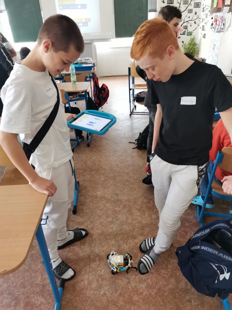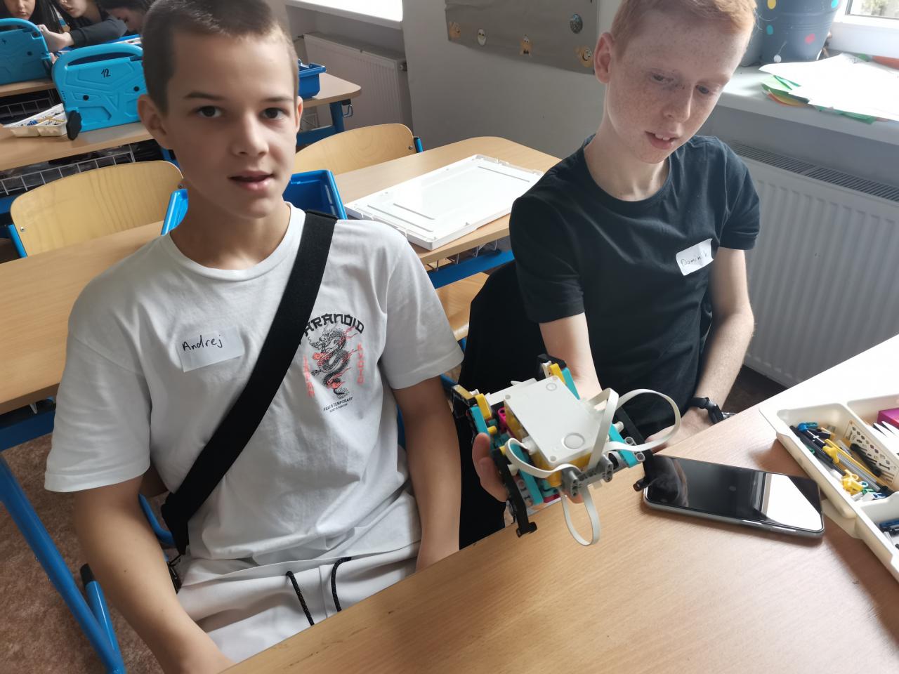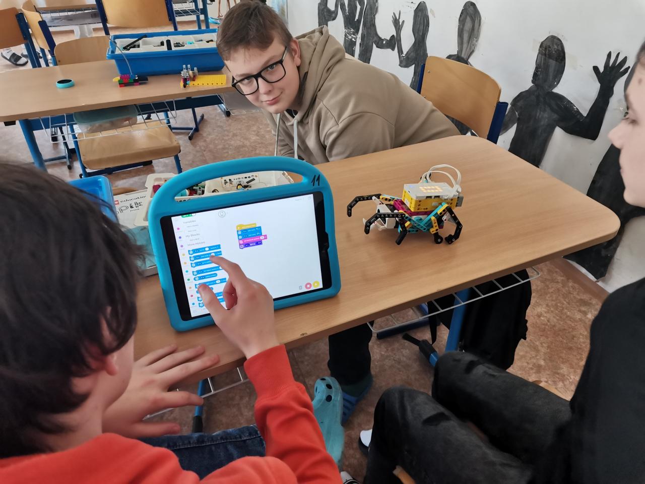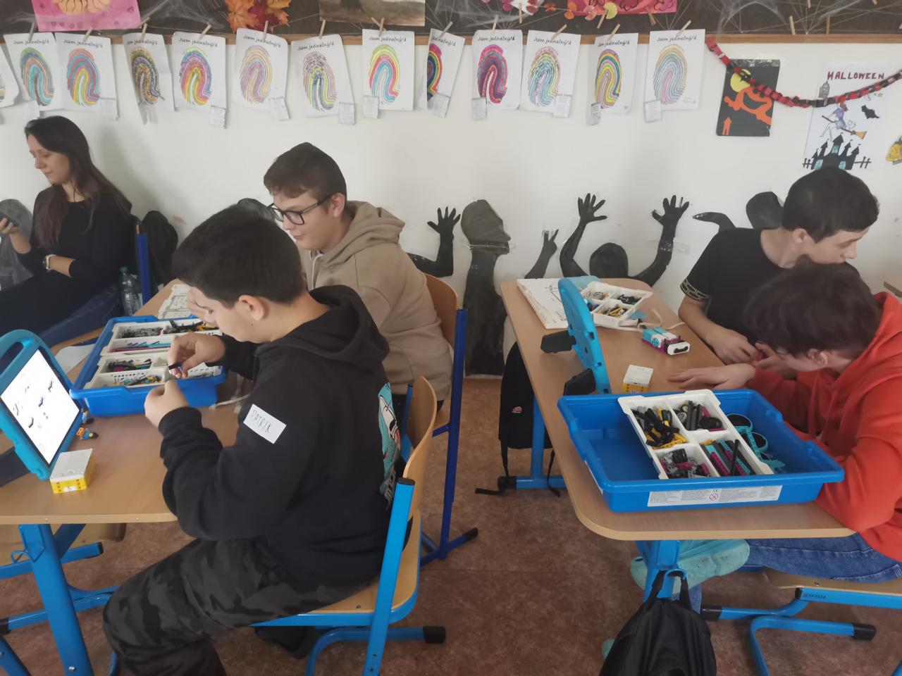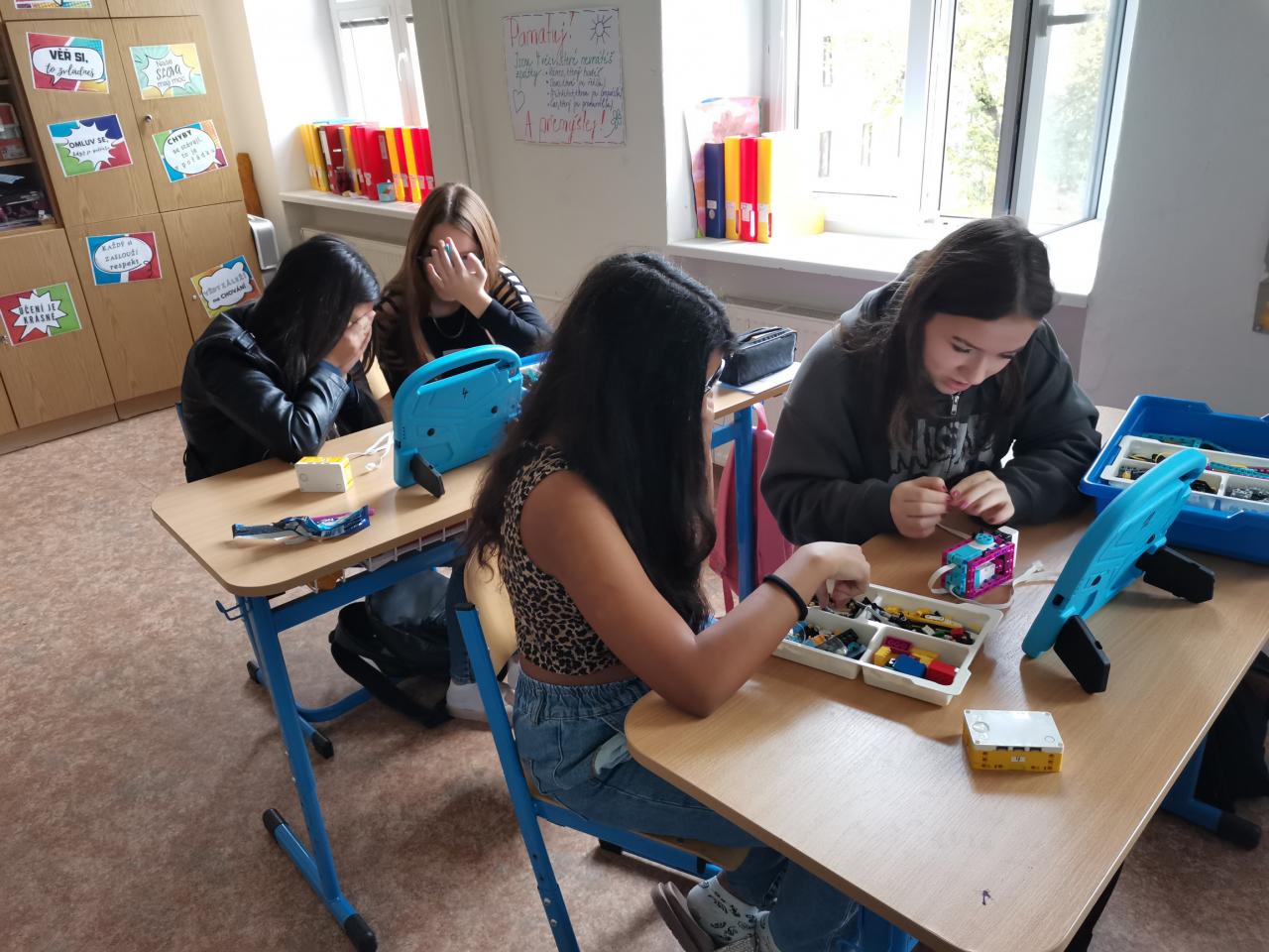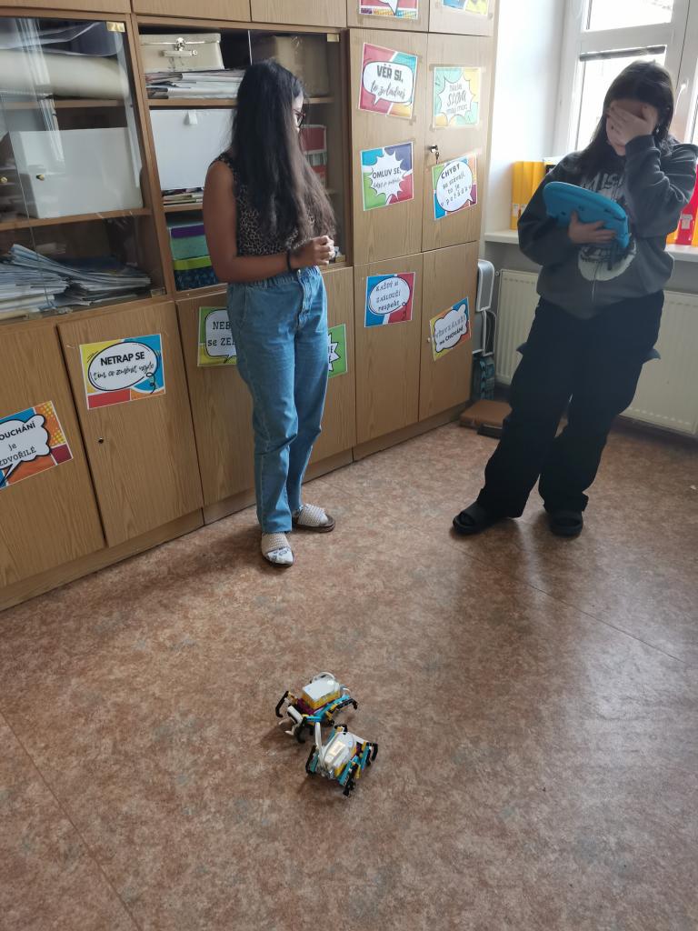 Ve třídě 8.A realizovaly projektovou výuku, která se věnovala hmyzu a pavoukům. Po úvodní prezentaci, kdy si s žáky zopakovali, co už o členovcích vědí, dostali žáci stavebnice LEGO, ze kterých si postavili pavouka. Po sestavení měli za úkol pavouka naprogramovat, aby uměl chodit a dokázal reagovat na různé podněty. Všichni žáci úkol splnili a nakonec proběhl i závod.