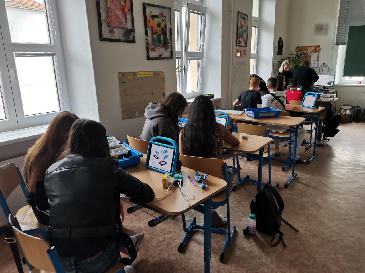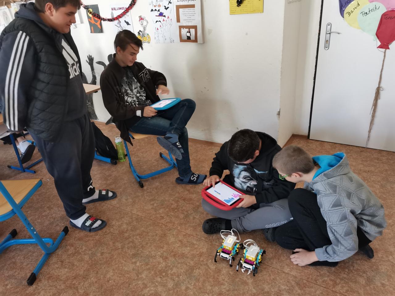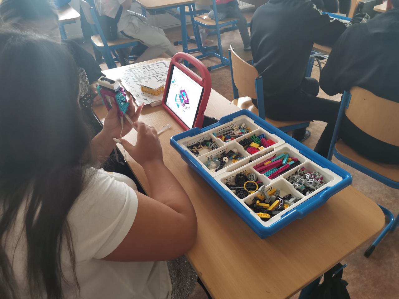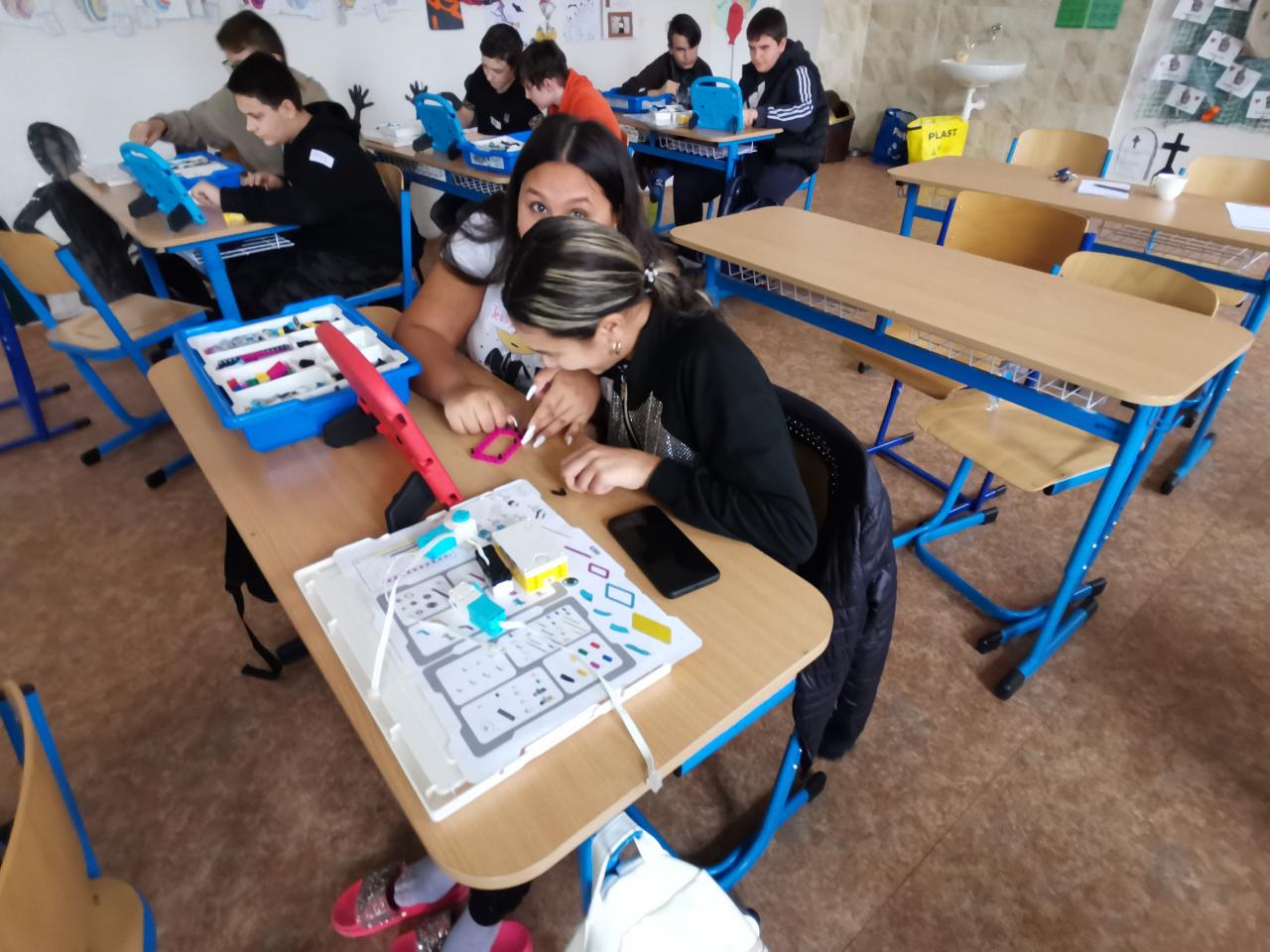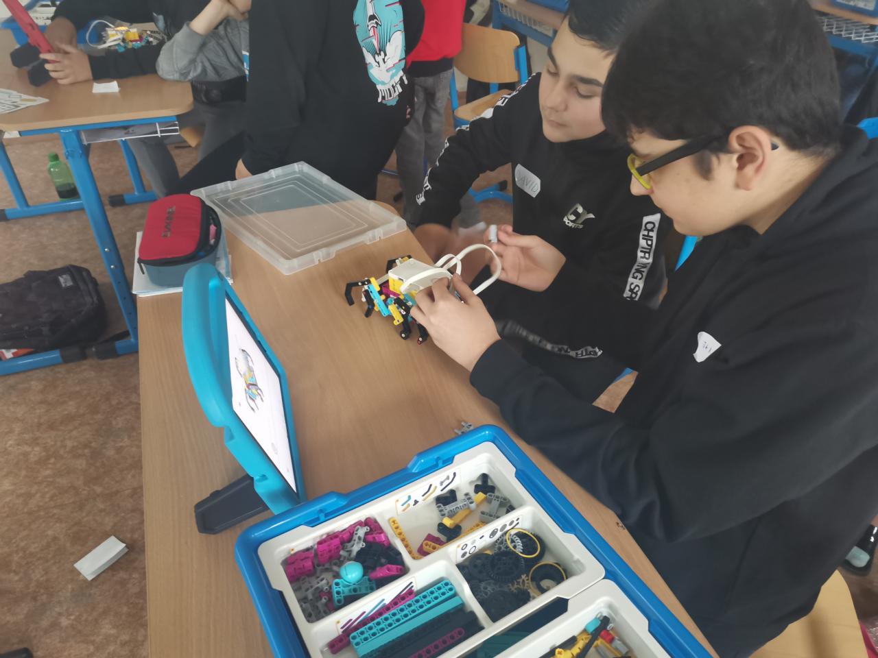 Ve třídě 8.A realizovaly projektovou výuku, která se věnovala hmyzu a pavoukům. Po úvodní prezentaci, kdy si s žáky zopakovali, co už o členovcích vědí, dostali žáci stavebnice LEGO, ze kterých si postavili pavouka. Po sestavení měli za úkol pavouka naprogramovat, aby uměl chodit a dokázal reagovat na různé podněty. Všichni žáci úkol splnili a nakonec proběhl i závod.