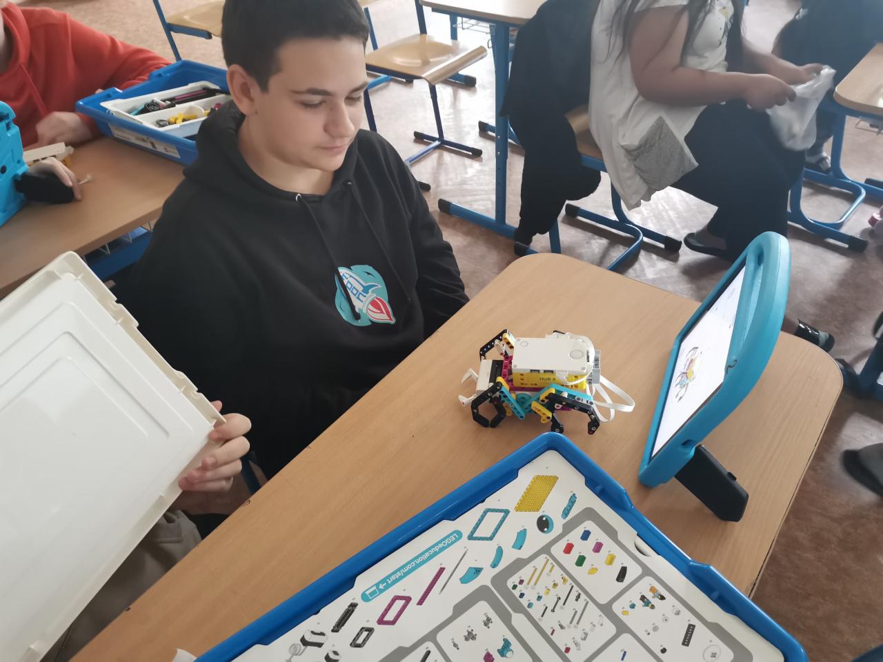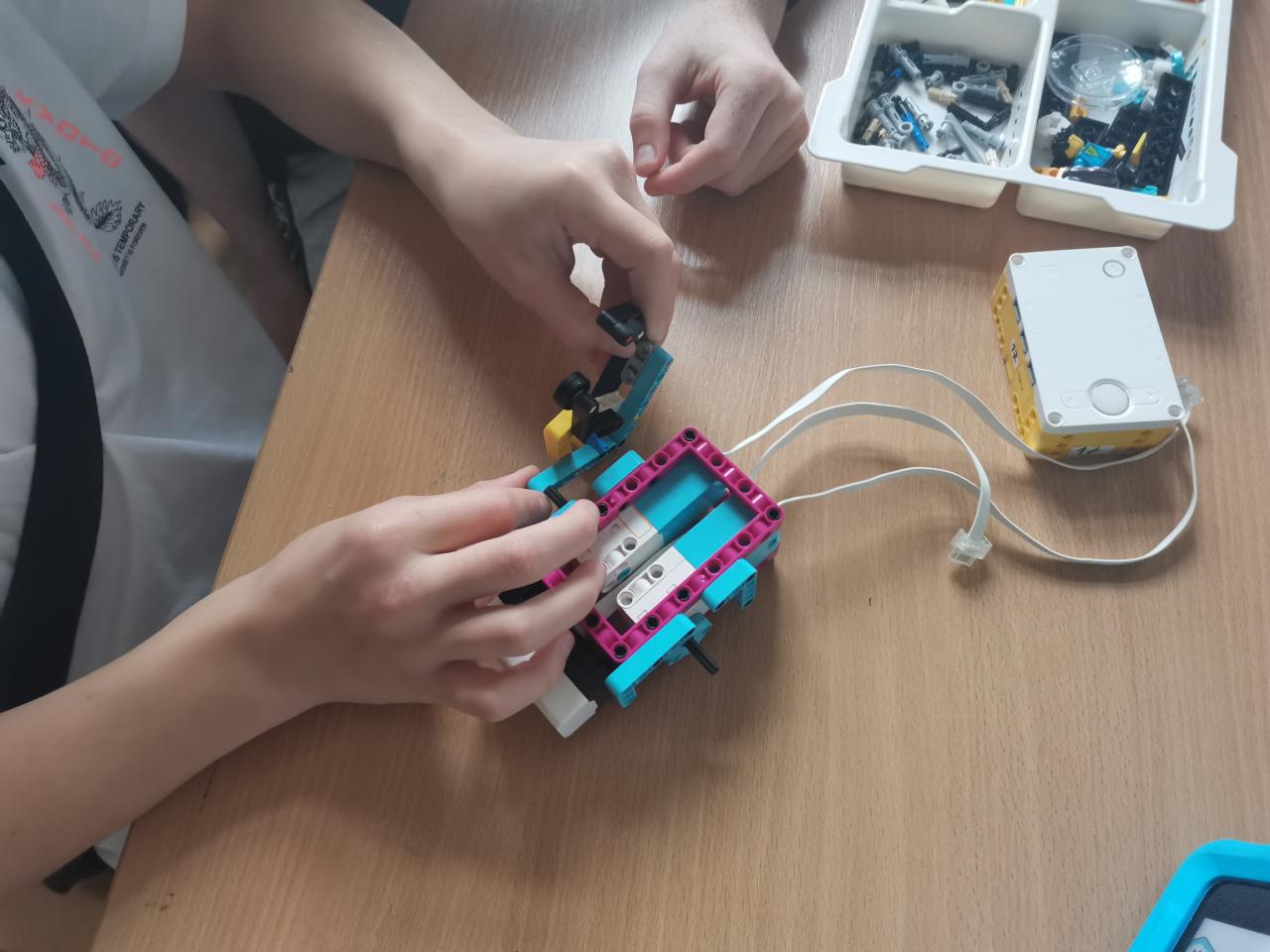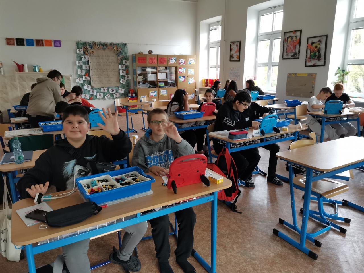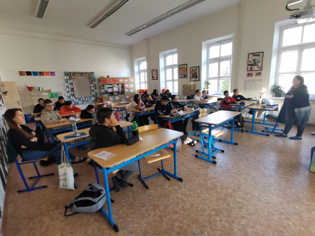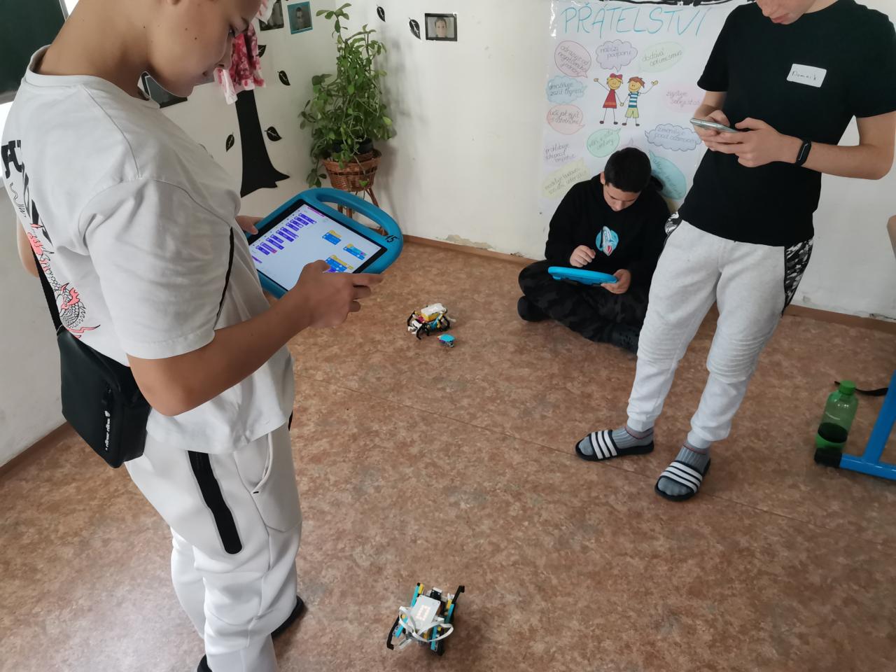Ve třídě 8.A realizovaly projektovou výuku, která se věnovala hmyzu a pavoukům. Po úvodní prezentaci, kdy si s žáky zopakovali, co už o členovcích vědí, dostali žáci stavebnice LEGO, ze kterých si postavili pavouka. Po sestavení měli za úkol pavouka naprogramovat, aby uměl chodit a dokázal reagovat na různé podněty. Všichni žáci úkol splnili a nakonec proběhl i závod.