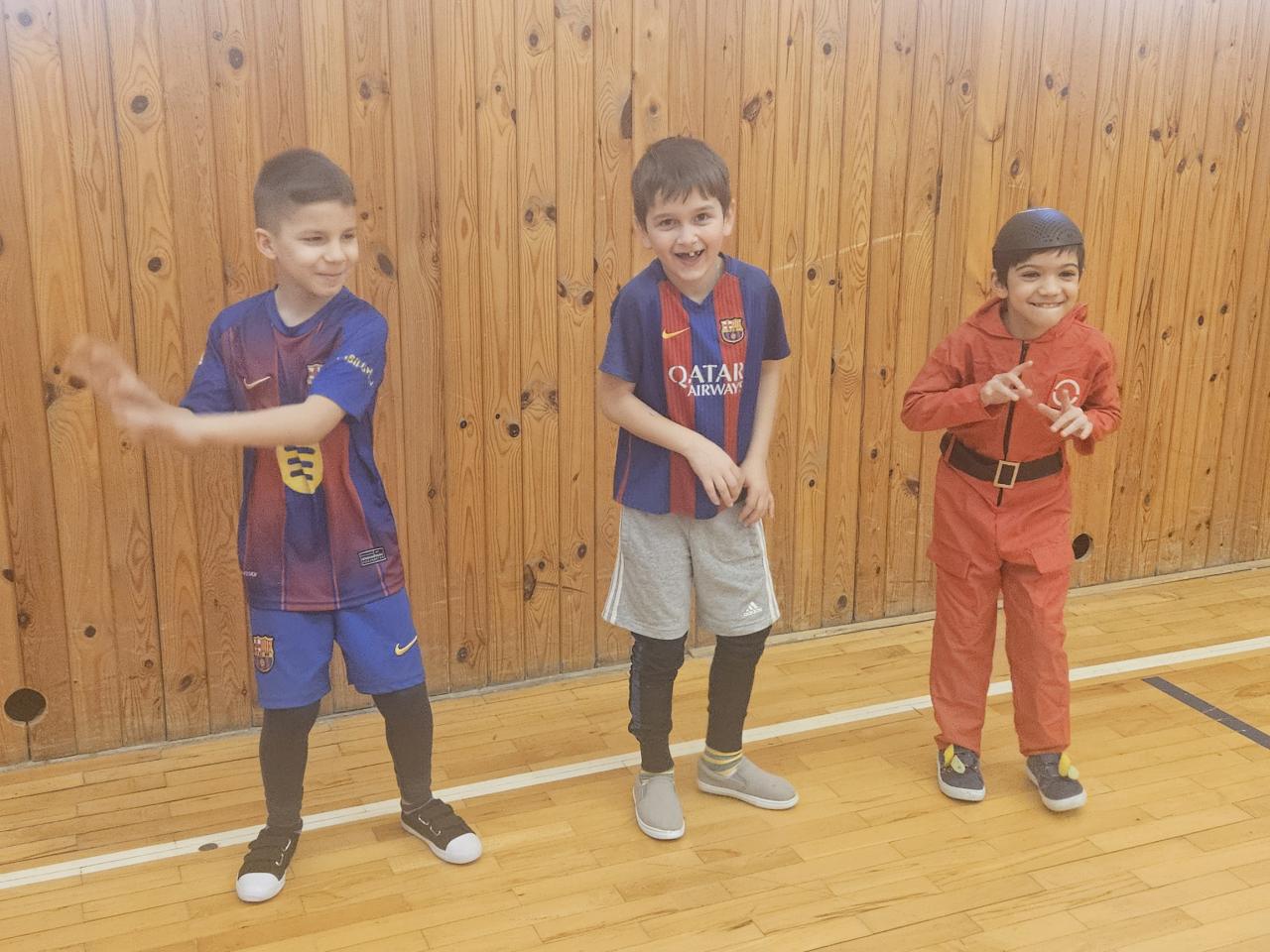 Proto si přinášíme do školy na 27. 2. masky a škrabošky a hned první vyučovací hodinu se do kostýmu převlékáme. Čeká nás hodina tance a skotačení. Bylo to fajn, pěkně jsme se rozpohybovali, zatančili a pobavili. Taková veselá hodina v tělocvičně nás hodně bavila.