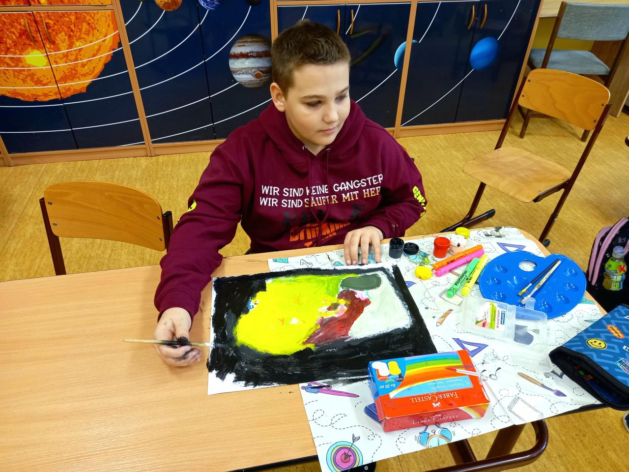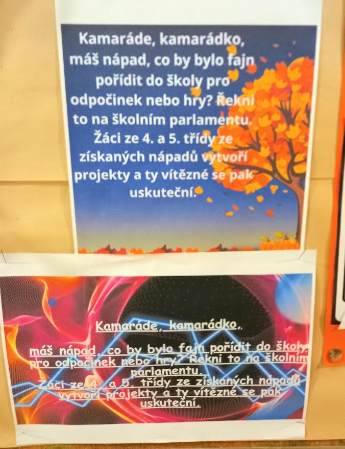 Žáci 4. a 5. tříd nejprve tvořili propagační letáček v rámci hodin informatiky a potom v projektovém dni vyráběli a malovali svoje návrhy, ze kterých budou vybrány ty, o kterých proběhne hlasování. Vítězný návrh, případně návrhy, budou realizovány.