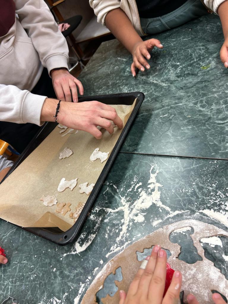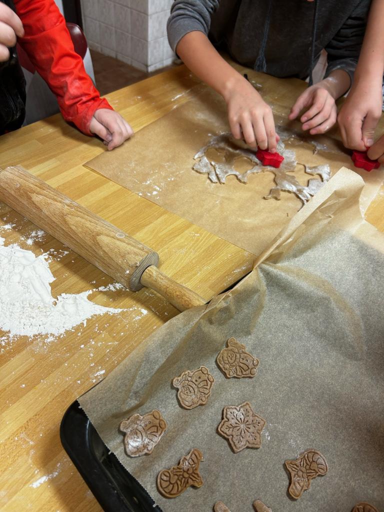 Včera se ve školní kuchyňce rozvoněla vánoční atmosféra, a to díky našim malým pekařům! S nadšením jsme se pustili do pečení perníčků. Těsto už bylo připravené, stačilo jen těsto rozválet, začít vykrajovat a perníčky hezky naskládat na plech.