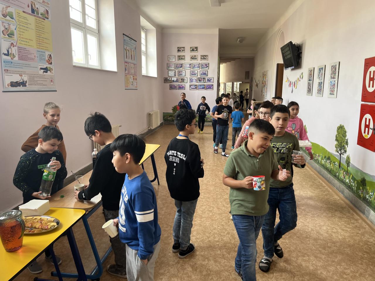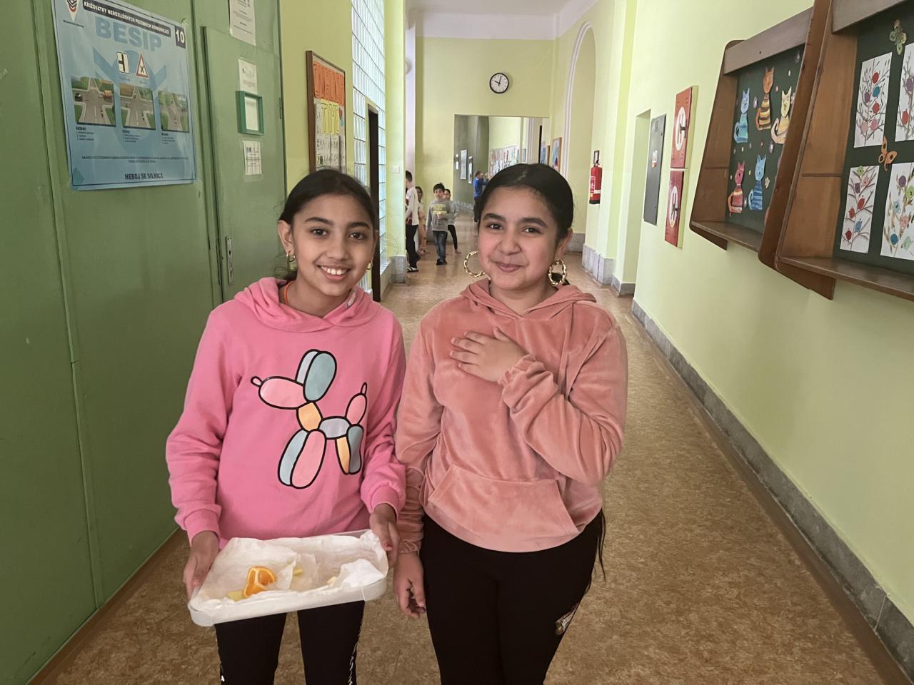 Mohli jsme vidět hostesky roznášející ovoce, které zvaly žáky k ochutnávce limonády do